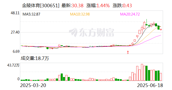 中证智能财讯金陵体育(300651)6月18日晚间公告,公司股票价格自6月5日至6月18日,已有连续10个交易日的收盘价不低于“金陵转债”当期转股价格(19.85元/股)的130%(即25.805元/股)。6月18日,公司股票收盘价为30.38元/股,涨幅1.44%。