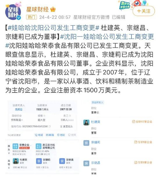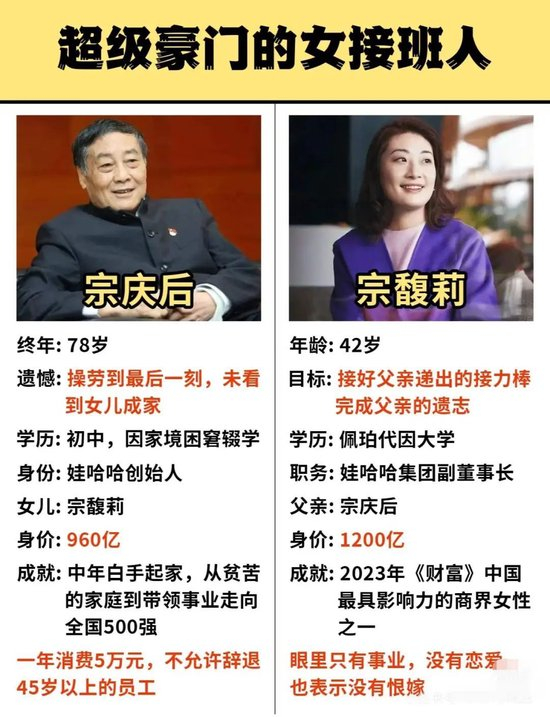 有传言说,宗大小姐只是长姐,不是独女。娃哈哈接班人另有其人。