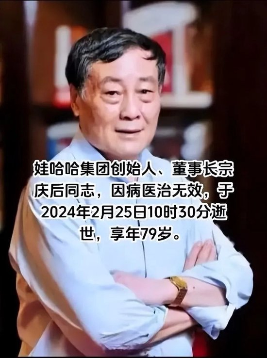 2024年2月25日,宗庆后因病医治无效,在杭州与世长辞。