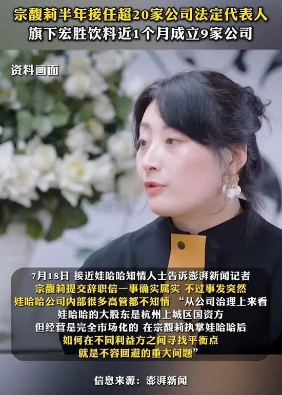 2024年7月,宗庆后去世五个月后,传来宗馥莉辞职的消息,全网哗然。