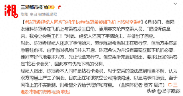 经纪人回应“陈冠希飞机上怒怼空乘”,还原现场:他也是钻石卡会员,有优先下机权