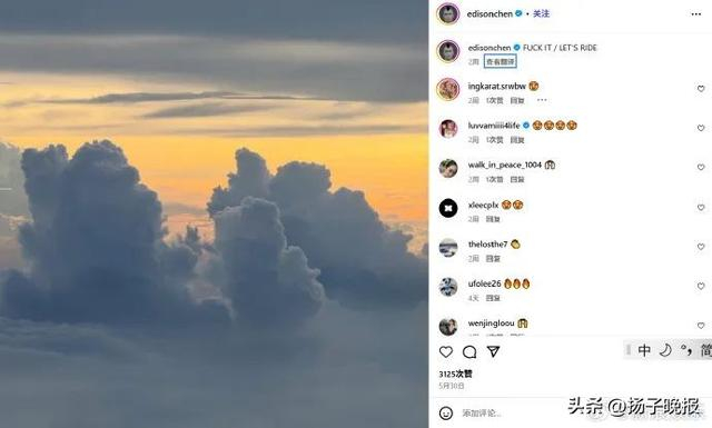 网友扒出陈冠希上月末发的ins,他配文“去你的,这趟行程”,疑似佐证了本爆料。