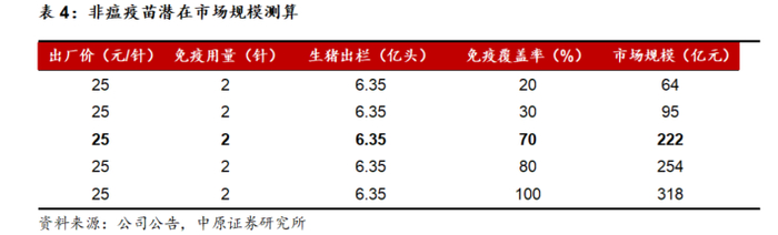 关于中国非洲猪瘟疫苗市场规模测算,做出如下假设: