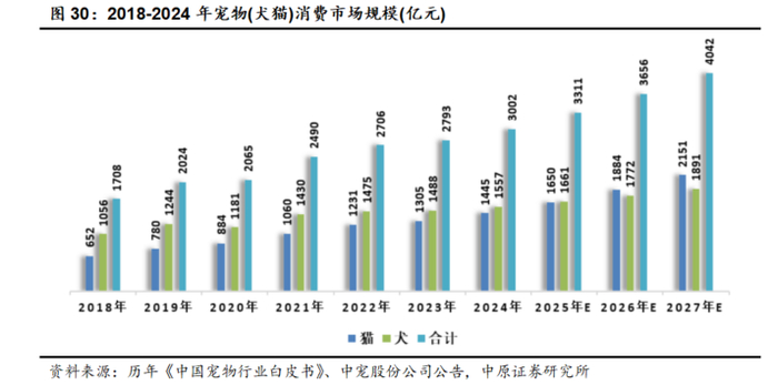 据《2025年中国宠物行业白皮书》数据,2024年我国宠物犬数量为5,258 万只,同比增长1.6%,宠物猫数量为7,153万只,同比增长2.5%,宠物数量持续增长。根据Euromonitor数据,2023年我国家庭养宠渗透率为32%,相较于美国、澳大利亚、英国渗透率分别为80%、69%、50%,我国宠物行业渗透率仍有较大提升空间。
