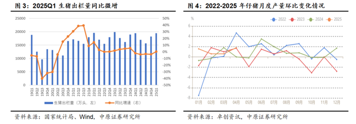 根据国家统计局数据,2025年一季度全国出栏生猪1.95亿头,同比微增0.11%;根据卓创资讯跟踪,2025年1-4月,仔猪月度供应量呈现出逐月增长的态势,环比增速依次为1.57%/0.6%/0.6%/1.8%。