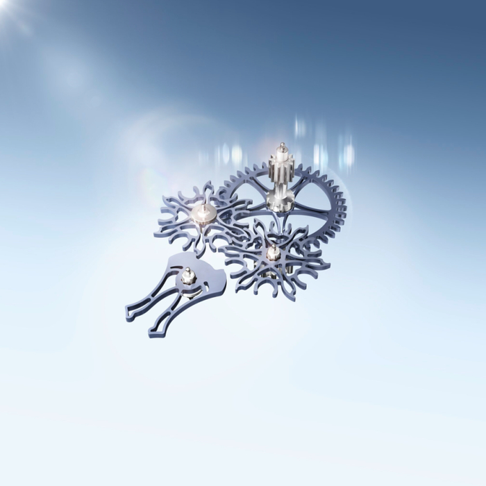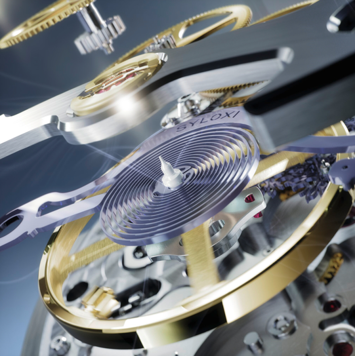 新款机芯合计拥有16项专利申请,主要来自擒纵系统及游丝摆轮组件。通过腕表的蓝宝石水晶底盖,可一睹机芯的多项重大创新元素。