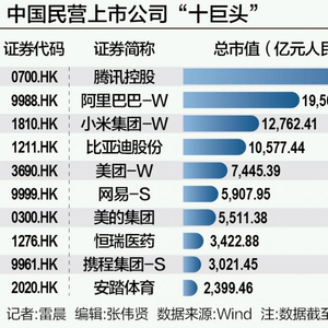 对标美股“七巨头”,高盛首次推出涵盖中国十大民营上市公司的“十巨头”(Chinese Prominent 10)组合,包括腾讯、阿里、小米、比亚迪、美团、网易、美的、恒瑞医药、携程和安踏。截至6月17日收盘,“十巨头”总市值超11万亿元人民币。