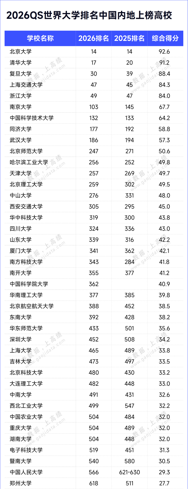 北京时间6月19日,2026QS世界大学排名发布。
