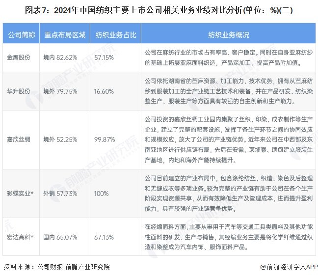 2、中国纺织行业上市公司业务业绩对比