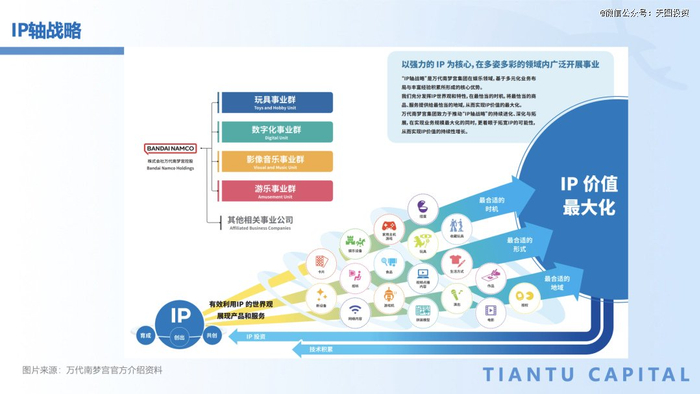 「万代南梦宫」的核心战略,可以概括为“IP轴”战略,以一个个的IP为轴心,让内容本身,与各种各样的消费品高度协同,形成圆满的商业闭环。
