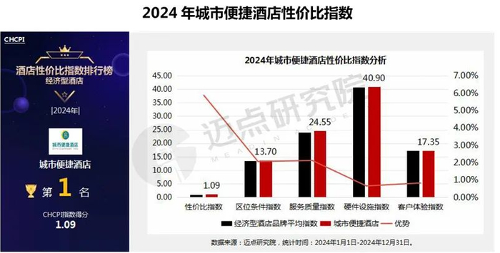 经济型酒店品牌案例分析:城市便捷酒店位列2024年经济型酒店性价比指数榜单第一名。城市便捷酒店是一个产品先行的大众住宿品牌,经过近20年的稳步发展,已经从区域性品牌成长为全国性的国民级品牌。2024年性价比指数位列经济型酒店榜首。城市便捷酒店在核心功能区的配置上实现全维度覆盖,这种"降本不降质"的运营策略,使其硬件设施指数位居经济型酒店前列,实现经济型造价、中档酒店体验。