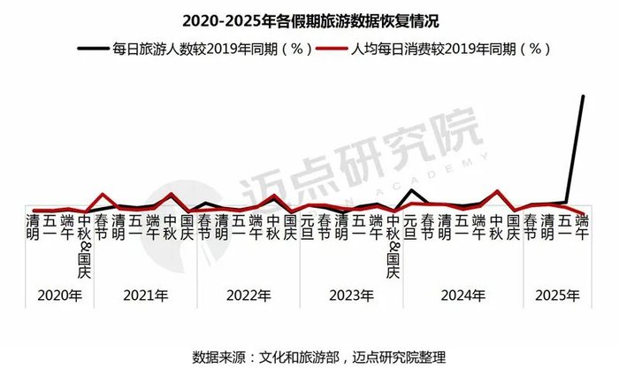 国内文旅消费方面:我国旅游市场复苏势头强劲,仍存在量增价低的情况。2023-2024年,我国旅游市场复苏势头强劲。尤其是2024年,国内旅游人次已接近2019年同期水平;国内游客出游总花费超越2019年同期水平,创历史新高。但从假日旅游数据恢复程度看,存在量增价低的情况。居民旅游意愿较强,是推动旅游收入较快恢复的主导力量,但消费能力仍有提升空间。