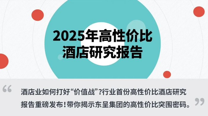 在消费理性化与行业转型的关键时期,高性价比战略已成为酒店业突破增长瓶颈的核心路径之一。近日,迈点研究院与东呈集团正式联合发布行业首份《2025年高性价比酒店研究报告》,内容主要涉及研究背景、酒店行业高性价比模型研究、酒店行业高性价比模型的实践和趋势展望四个维度,基于全国32个省市自治区、5万+酒店样本,以东呈集团为典型案例,解析酒店行业头部企业的高性价比突围之道。