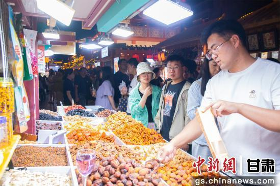 6月17日,甘肃省敦煌市经过改造装修后的敦煌夜市迎来了来自全国各地的众多游客。每当夜幕降临,游人纷至沓来,徜徉于敦煌夜市,品尝敦煌美食,选购自己心仪的旅游纪念品。始建于1983年的敦煌夜市,经过40多年的发展,已经成为集美食、购物、娱乐、文化于一体的综合性夜市。(王斌银 周玉玲)