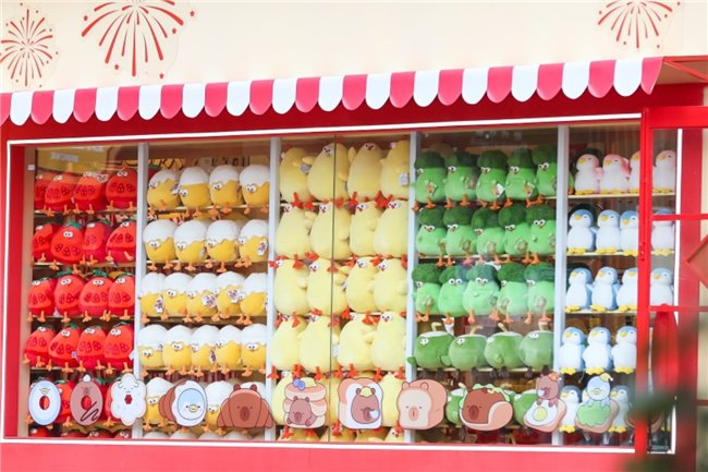 “内容+消费”模式让情感价值转化为商业动能。名创优品2025年Q1财报显示,“吉福特家族”销售额超6300万元,吉福特熊以4800万元登顶毛绒类榜首。这得益于名创优品“联名+原创”双引擎战略——合作150+国际知名IP,孵化墩DUN鸡等原创IP。同时墩DUN鸡通过变装系列和综艺植入,在全平台积累超50万忠实粉丝,成话题流量破5亿的国民级IP。