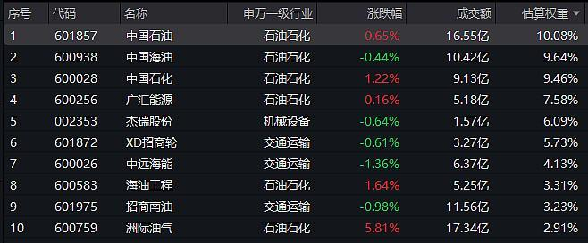 【$油气资源ETF(159309)标的指数前十大成分股表现】