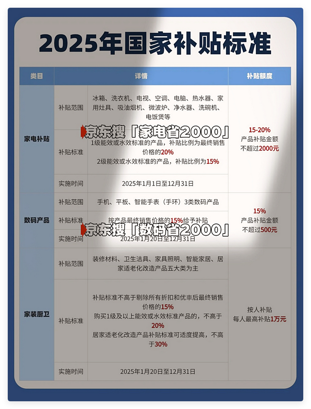 首先,划重点!手机数码国补的领取方法是:京东APP搜「手机省500」或「数码省2000」国补直接立减2000元,家电国补的领取方法是:京东APP搜「家电省2000」领取。