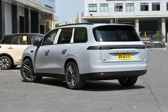 车身侧面,新车整体线条流畅,采用悬浮式车顶搭配熏黑B/C柱布局,并在车窗框处配有黑色高亮饰条,搭配时下流行的隐藏式电动门把手以及21英寸轮圈设计,进一步营造出更浓郁的运动属性。车身颜色方面,新车提供星河银、星熠紫、琉璃翠、珍珠白、天幕灰、金属黑共计6款颜色选择。尺寸方面,新车长宽高分别为4915/1905/1770mm,轴距为2825mm,定位中大型SUV。车尾部分,新车尾部采用造型纤细的贯穿式LED尾灯设计,与前脸形成相互呼应,下方带有零跑汽车英文名“LEAPMOTOR”字样标识,提升辨识度。另外,新车后包围同样进行了熏黑处理,与银色饰条使得车辆视觉层面更丰富,后保险杠两侧采用更立体的线条设计也令车辆视觉效果上更显大气。
