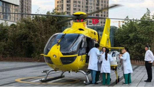 6月2日,一名出生仅1天的新生儿,需从烟台毓璜顶医院转运至青岛市妇女儿童医院治疗。搭载医护人员的山东高速华通航空公司直升机从青岛起飞到达烟台,完成新生儿登机前病情评估及交接后,直升机起飞用时50分钟返航,相较地面转运2.5小时效率提高约67%,为患儿节省宝贵救治时间。