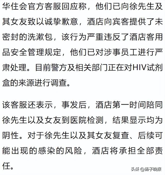 情侣在酒店洗漱包中发现用过的HIV检测盒,当晚紧急就医!酒店欲补偿3000元遭拒,官方已介入