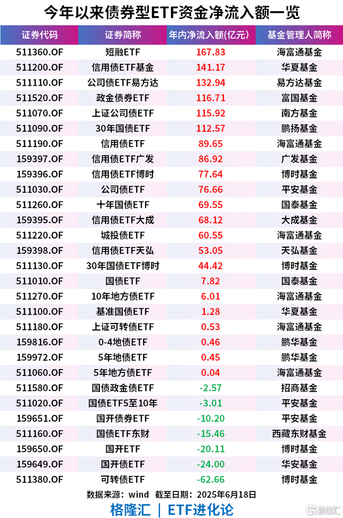 截至6月18日,6月超428亿元资金净流入债券型ETF,年内吸金1292亿元。