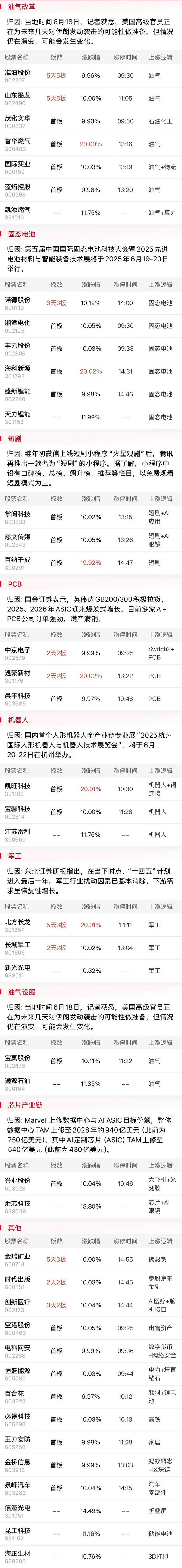 据央视新闻报道,美国高级官员正在为未来几天对伊朗发动袭击的可能性做准备,全球约20%的石油贸易需通过霍尔木兹海峡。市场担忧任何影响霍尔木兹海峡的事件都会波及全球能源市场,进而推高油价。随着国际油价午后转涨,刺激油气股持续扩大涨势,准油股份、山东墨龙晋级5连板,带动石油、天然气产业链低位股批量爆发,首华燃气等多股涨停,凯添燃气、通源石油实现反包均涨超10%。不过在市场整体仍处退潮期背景下,今日油气股方向再度逆势加强后多数后排股兑现压力仍然较大,关注明日早盘能否扛住分歧并继续吸引场外资金返场博弈周末消息面的超预期。而相比油气板块,尽管早盘低位股长城军工逆势涨停,加上午后20厘米人气股北方长龙逆势实现连板晋级,但板块内其余低位品种仍多以冲高回落为主,因此短期仍只能视为油气方向的低位补涨性质。