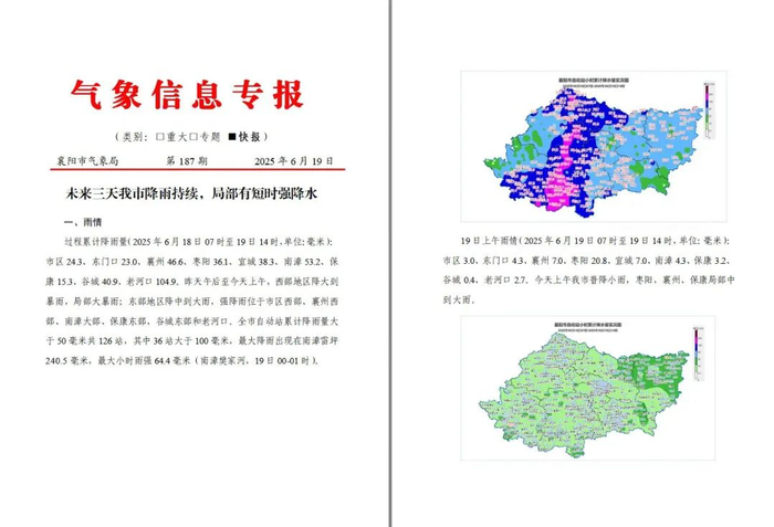 2025年06月19日08时-2025年06月20日08时,预计三峡库区(兴山县东部和南部、秭归县、夷陵区)、十堰(茅箭区北部、张湾区东部、郧阳区东北部、竹溪县中部、丹江口市)、襄阳(谷城县东南部、保康县南部和东部、南漳县)、宜昌(西陵区、猇亭区、伍家岗区、当阳市西部、宜都市、长阳土家族自治县、远安县)、恩施(恩施市、建始县南部、利川市、咸丰县、来凤县)、荆州(松滋市中部)、荆门(京山市北部)、孝感(孝昌县东部、大悟县)、武汉(黄陂区北部)、黄冈(红安县、麻城市、罗田县、英山县北部)以及其他强降水区域发生崩塌、滑坡、泥石流的风险较高;其中,三峡库区(兴山县东部、秭归县东南部、夷陵区西部)、宜昌(点军区、远安县中部、宜都市中部南部、长阳土家族自治县、五峰土家族自治县)、恩施(巴东县南部、建始县南部、利川市南部、咸丰县西北部和东南部、来凤县东部和中部、宣恩县、鹤峰县)、荆州(松滋市西部)发生崩塌、滑坡、泥石流的风险高,需注意防范!