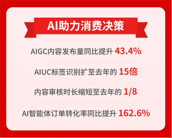 大促期间,“什么值得买”正式升级为第二代版本“什么值得买”GEN2,在以兴趣为运营核心的同时,进一步强化了AI能力。原购物助手“小值”升级为AI购物管家“张大妈”,并与业务进行深度融合,帮助用户在大促实时变化的消费信息中快速获得决策支持。自5月13日至6月18日,AIGC内容发布量同比提升43.4%,AIUC标签识别扩至去年的15倍,内容审核时长缩短至去年的1/8,通过平台AI购物智能体达成的订单转化率同比提升162.6%。