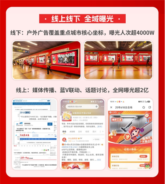 在灵活的平台运营之外,“什么值得买”也注重让“值得买才是618”的理念触达线上、线下更多人群,帮助更多消费者过好大促。其中,线上通过蓝V联动、用户共建、话题传播等多元形式撬动声量,最终实现全网曝光超2亿;平台户外广告也覆盖了北京、上海、广州、深圳、厦门、苏州等多个大型城市的核心商圈,曝光人次超4000万。