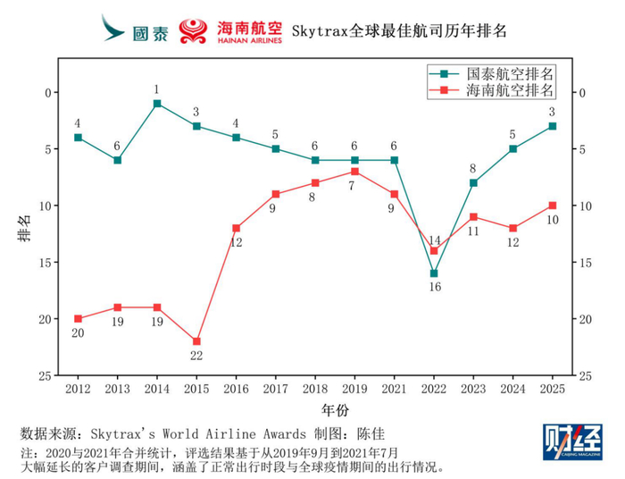 在这份年度榜单中,《财经》梳理出十大亮点,从全球排名的波动趋势中观察国际航空服务的变化脉络:
