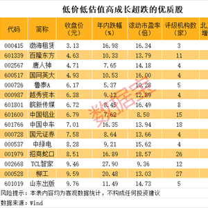 低价、低估值、高成长、超跌的优质股,15股上榜