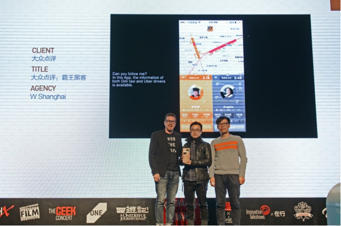 王宏伟与W野狗头子李三水共同领取ONESHOW金铅笔全场大奖