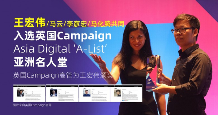 王宏伟与马云、马化腾共同入选英国《Campaign》评选的亚洲名人堂;