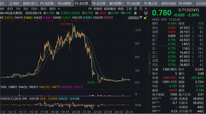 但2022年,龙光地产深陷债务危机后,纪凯婷辞任公司非执行董事,全面退出管理层。如今,龙光集团最新市值跌至42亿元,为高点时的一折不到。面对这样的K线图,纪海鹏回归管理一线,是必然结果,若由年轻的纪凯婷来承担,或许责任太重了点。