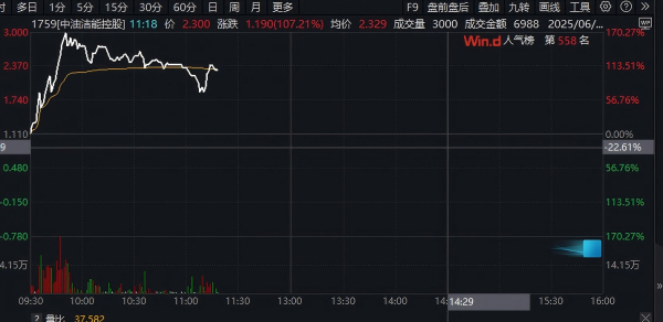 其他大幅波动的港股中,中油洁能控股暴涨,盘中涨幅一度超过170%。