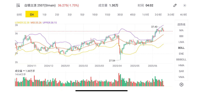最直接的方法是交易期货, $白银主连 2507(SImain)$ ,目前老虎App支持期货交易,不过如果没开通期货交易的朋友不妨看看白银ETF。