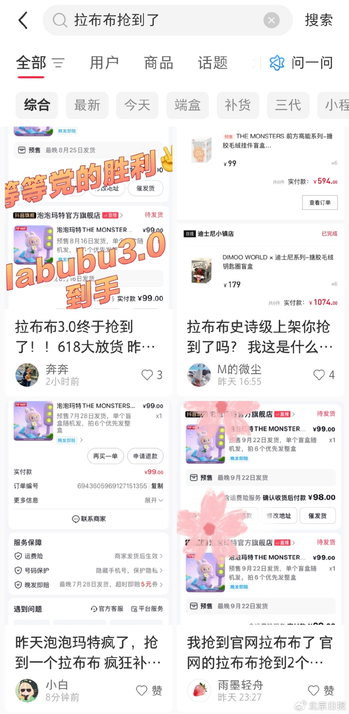 在社交平台上,不少网友已纷纷晒出抢到Labubu的预售订单。