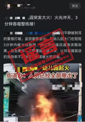 通 报一幼儿园发生大火,32名孩子被困?实为使用“AI工具”编造的谣言