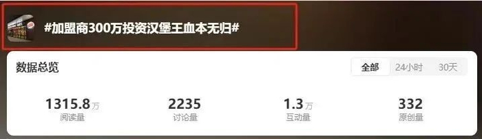 加盟商300万投资汉堡王血本无归相关词条冲上热搜
