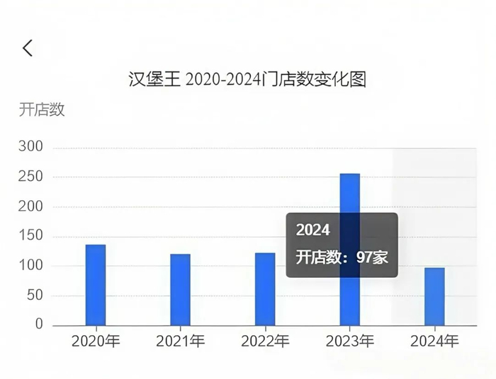 汉堡王的财报数据佐证了这一点。2023年,汉堡王中国原计划新增200家门店,最后只开了176家。2024年更是出现了负增长,全年新开门店仅87家,而关闭门店却超过300家,净减少113家。