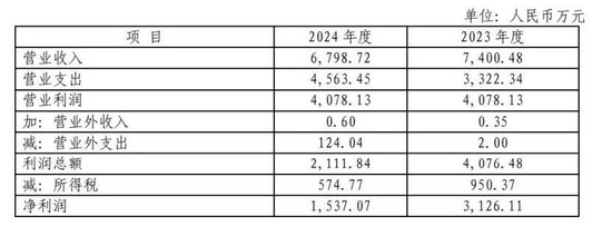 从鹤山村镇银行2024年业绩来看,期内实现营收6798.72万元,同比下滑8.1%,净利润1537万元,同比下滑50.83%。