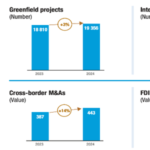 报告显示,工业领域的绿地投资项目增加3%,但价值下降5%,总价值仍保持 1.3万亿美元的有纪录以来第二高水平。国际项目融资 (IPF)则继续呈下降趋势,降幅26%,汇率和利率的不确定性也影响融资条件。此外,跨境并购交易额增长14%,达到4430亿美元,但仍低于过去十年的平均水平,这表明在政策风险、监管审查以及全球不确定性加剧的情况下,投资策略正朝着国内和近岸投资方向发生结构性转变。