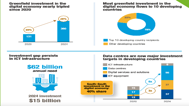 数据中心现已成为对发展中国家的主要投资目标,其次是数字服务和解决方案、信息通信技术(ICT)设备和基础设施。