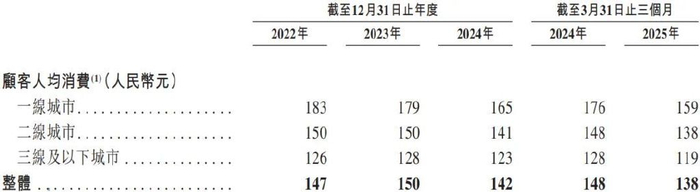 招股书显示,过去三年,其人均消费介于142元—150元之间,今年一季度则降到138元,同比下降10元。