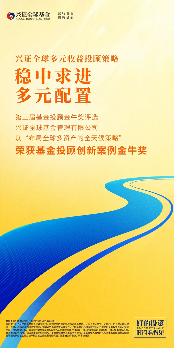 6月19日,由中国证券报主办的“2025金牛财富管理论坛”在上海举行,第三届基金投顾金牛奖颁奖典礼也同步举行,兴证全球基金荣获基金投顾创新案例金牛奖和大学生投教金牛奖。