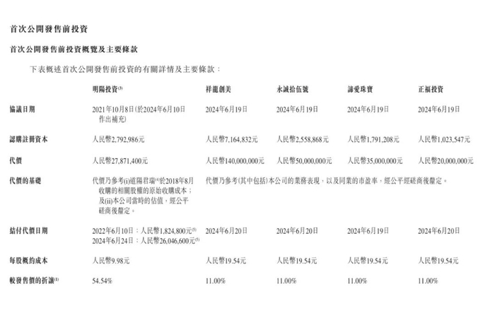 公司2024年6月最后一轮融资每股19.54元人民币(约21.3港元),相比本次招股价24港元,一年时间估值上涨13%,也算合理。