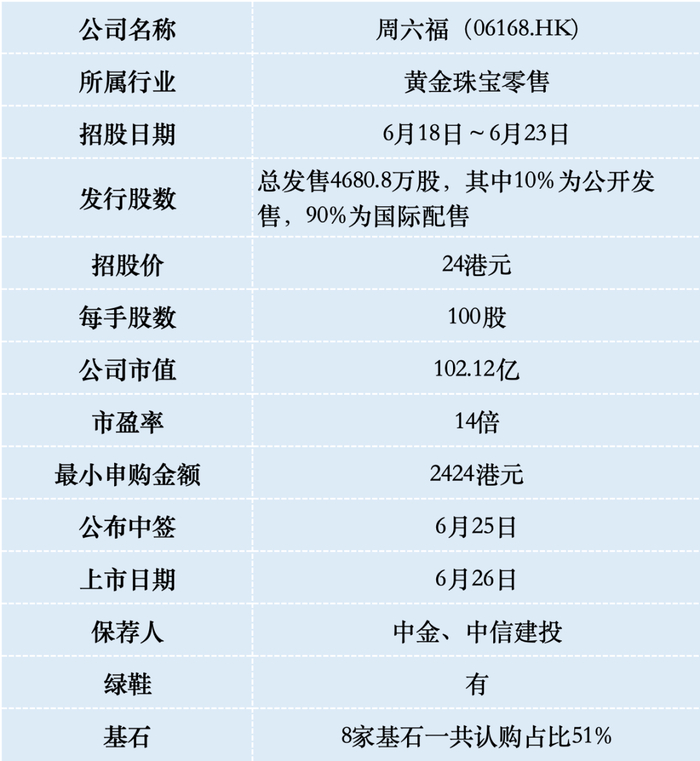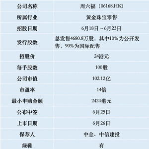 周六福港股打新分析,上涨20%并维持三天就可以进港股通