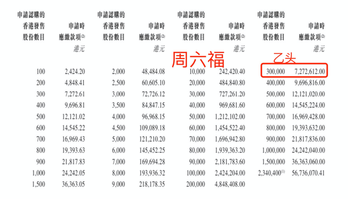 周六福现在孖展90倍,最终大概率会超购500倍启动回拨至公开发售50%,甲乙组各11.7万手,按10万人申购算,预估一手中签率40%,申购20手稳中一手。