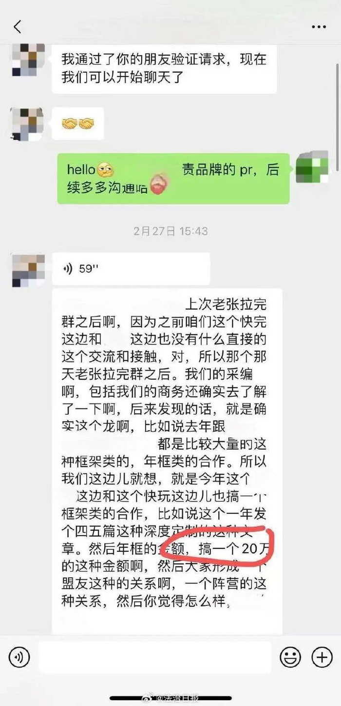 2023年1月,苏某便在公众号发布关于该公司加盟问题的负面文章,咖啡品牌公司发现后联系苏某,苏某趁机提供了一份收费20万的合作协议,同时删除了相关文章以示诚意。之后,某咖啡品牌公司未接受合作协议,该公众号遂于8月将该文再次发布。