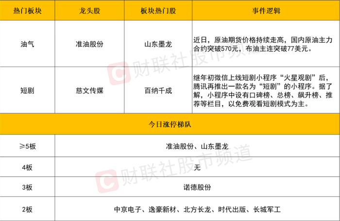 盘面上,市场情绪极差,题材概念全线下跌。石油、天然气概念午后集体爆发,首华燃气、准油股份等多股涨停;影视传媒、短剧概念走强,慈文传媒、掌阅科技涨停;固态电池概念盘中拉升,湘潭电化、丰元股份等多股涨停;PCB、铜缆高速连接等AI硬件概念局部活跃,逸豪新材、凯旺科技等涨停。